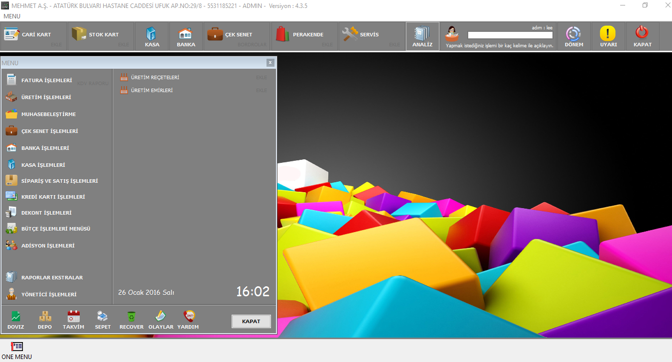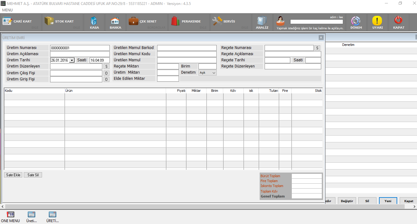 Üretim modülleri Makina Aksam ve Parça, Gıda Üretimi, Mobilya, Halı Kilim, Tekstil ve Hazır Giyim vb. üretimi yapan firmalar için tasarlanmıştır ;