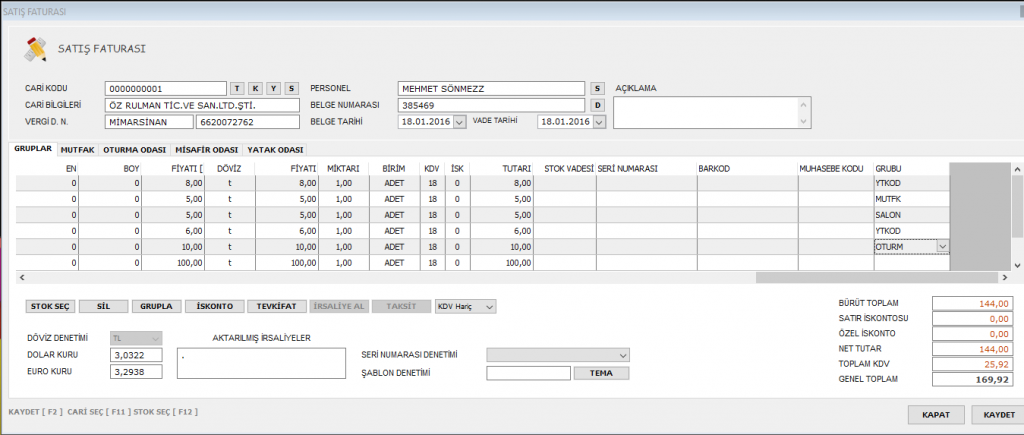 - Faturalamada Bu Bölümleri Ayrı Ayrı Görebilmek ve Yazdırmak