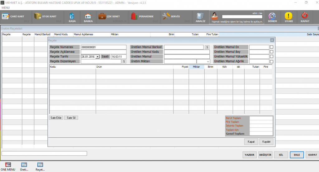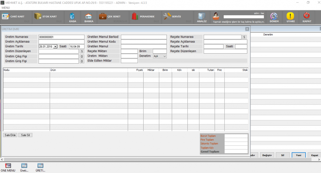 Üretim modülleri Makina Aksam ve Parça, Gıda Üretimi, Mobilya, Halı Kilim, Tekstil ve Hazır Giyim vb. üretimi yapan firmalar için tasarlanmıştır ;